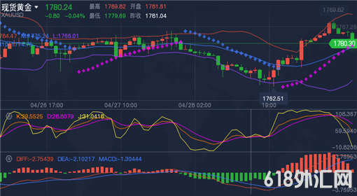 周四(4月29日)亚洲时段,现货黄金小幅上涨,交于1786附近。周三(4月28日)金价探底回升,收涨0.29%,此前美联储维持利率不变,并确认维持宽松货币政策以支撑经济复苏,随后美元和美债收益率下跌。另外,拜登公布了1.8万亿美元的“美国家庭计划”,高盛也继续预计未来六个月金价将涨至2000美元,这些都有利于黄金上涨。不过股市继续在高位运行及疫苗接种的推进可能令金价承压。日内重点关注美国一季度GDP、初请及一季度核心PCE物价指数,数据可能继续向好,对金价产生一定的压力。
