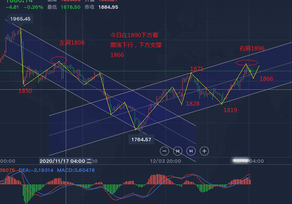 错过低位做多,没有再次追涨,那么1883到1888区域继续做空1898损目标1856到1835到1803区域,激进早盘波动不大1878到1783区域短线参与1892损就好,至于做多继续回落20美金在1856区域择机企稳在进场。切记不要1880上参与追多。