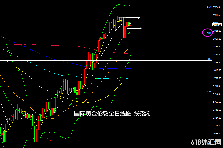国际黄金:下方初步支撑10日均线附近的1889美元,稳健支撑中轨附近的1885美元附近,进一步关注50%回撤位处的1877美元附近支撑;上方关注1903美元附近阻力,以及1909美元。