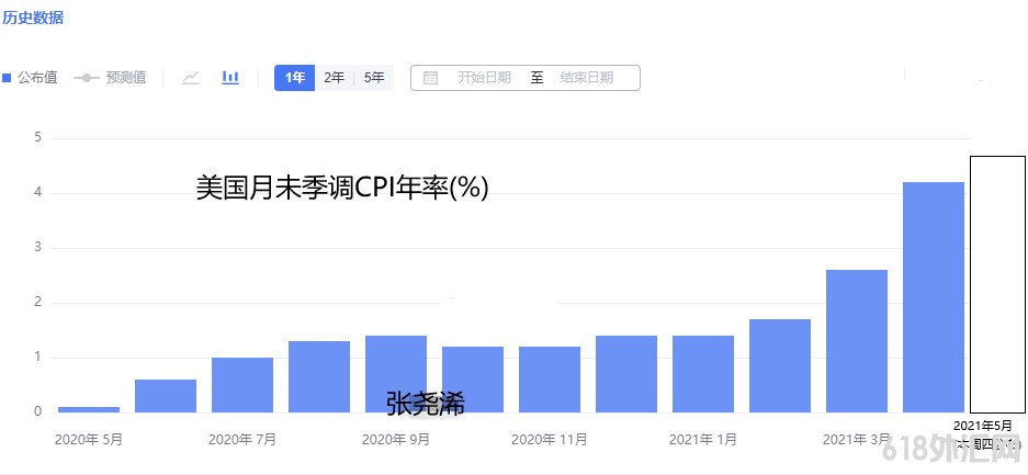 参考5月12日公布的4月份CPI从3月份的2.6%上升至4.2%,黄金在数据发布当天下跌了超过1%,这再次表明了黄金对通胀数据的敏感性,这次预计仍将再度上升,并对金价造成打压,不过相对前值预期有所降低,关注实际数据是否会意外大涨,而可能会给黄金带来压力。