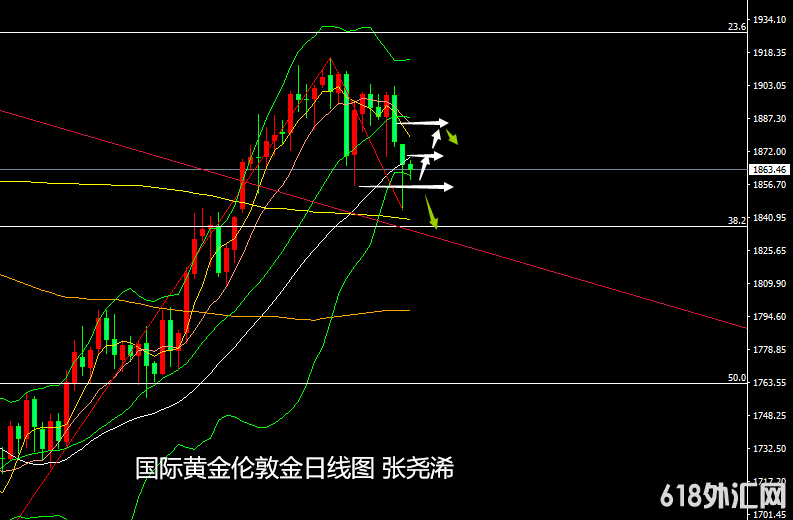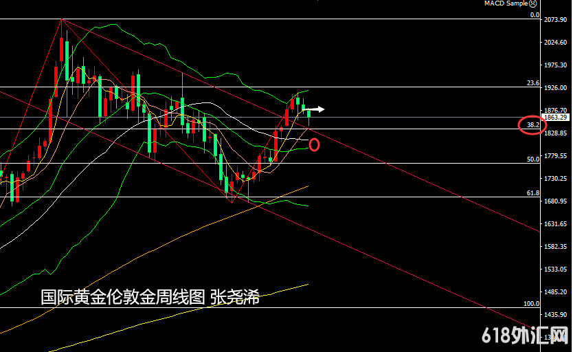 最后,本周金价已较大回撤,不排除美联储决议有买事实的走势,也可认为目前的下跌是对此预期的消化,故此关注决议公布后是实际走势而定,如反弹,在未站稳中轨之前,仍可高空,如再度回落,下方关注1815美元或1800美元附近博取反弹也可操作。具体思路以实仓通知为准。