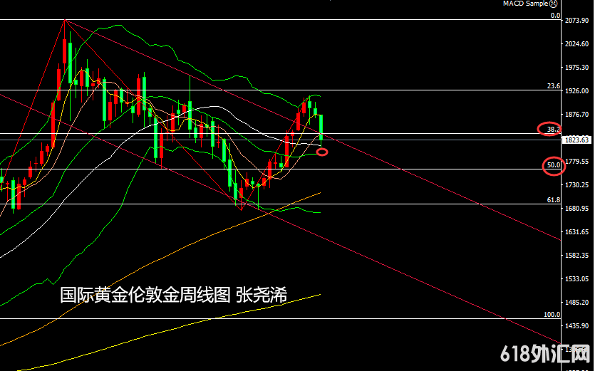 故此,金价触及支撑位置将看好反弹,下方重点关注30周均线,布林带中轨,以及23.6%回撤线支撑,都是多头机会。上方则关注60日均线附近阻力,反弹突破持稳多头看好延续力量。