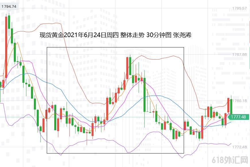 上交易日周四(6月24日):国际黄金伦敦金再度冲高回落,倒垂收阴。