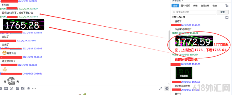 6.29黄金美盘布局的1773附近空,成功抵达目标1761,完美收割;