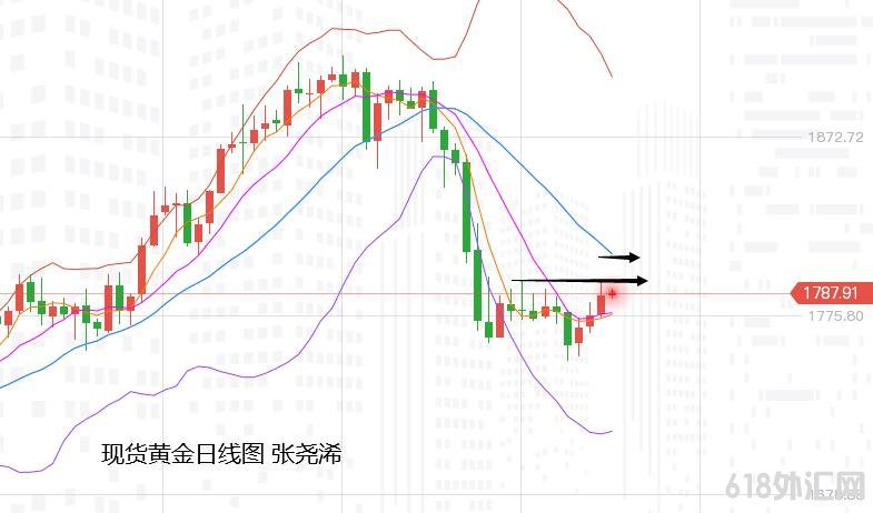 综合来看,整体偏向延续反弹走高的概率较大,基本面利空的压力有所减弱,技术的看涨反弹周内预期仍有增加。本周目标以1810美元附近或上方为主。日内不会有任何可能影响美元走势的数据发布,行情关注在技术水准之间的波动。