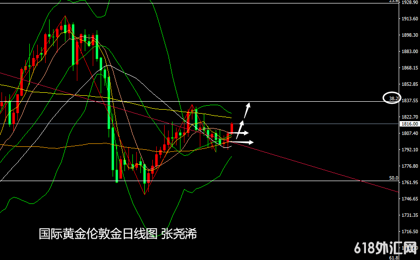 国际黄金:上方关注1821美元附近阻力,以及1832美元。下方关注1808美元支撑,以及1800美元支撑;