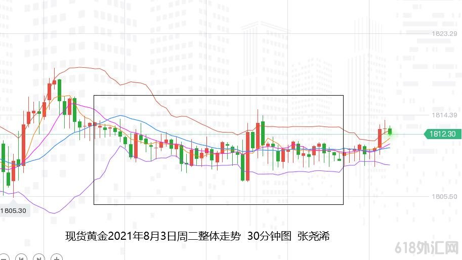 另外,美国7月ISM非制造业PMI预期也有所增加,近期美国经济复苏加速,但就业市场受供给限制而滞后,所以晚间小非农预计有概率利好金价,不过ISM非制造业PMI自去年6月以来一直处在枯荣线上方,这显示服务业的扩张一直在稳步进行中,再者隔夜多数企业财报表现积极,暗示晚间数据将会利空金价。所以整体来看,走势依然还是趋于震荡。