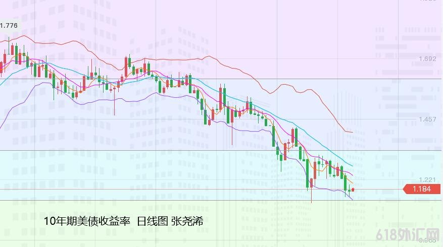 较大方向走势上,根据100日均线向上发展,并有触及200日均线形成金叉趋势,另外,10年期美国国债的负实际收益率(-1.18%)仍处于历史最低水平,这表明金价会走高。所以,个人偏向后市连续看涨的观点;