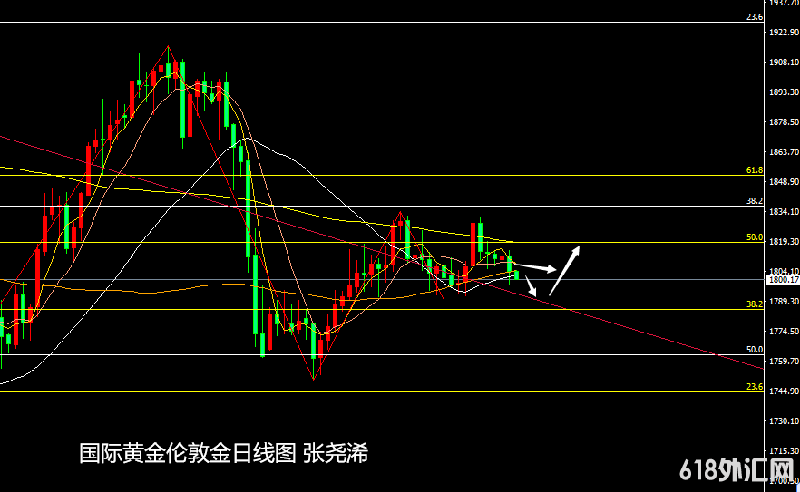 国际黄金:上方关注1805美元初步阻力,以及1809美元,进一步关注1819美元重点阻力。下方关注1796美元支撑,以及1791美元支撑,进一步关注1785美元重点支撑;