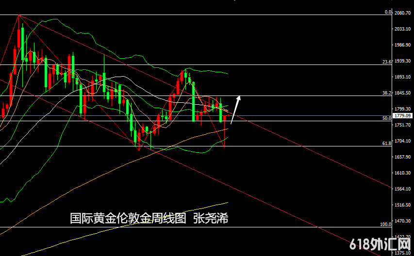 黄金市场上周:国际黄金伦敦金探底回升,以长下影线转强收阳。