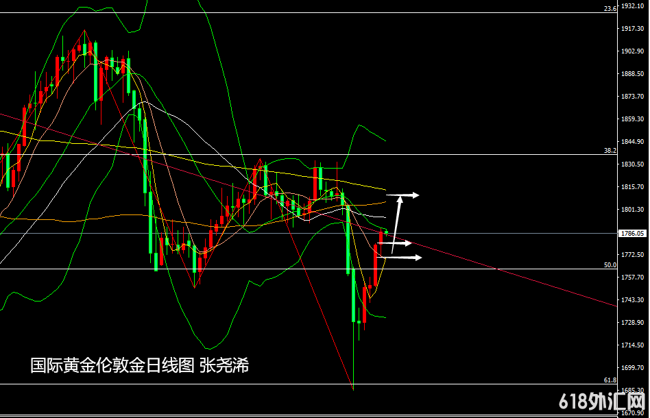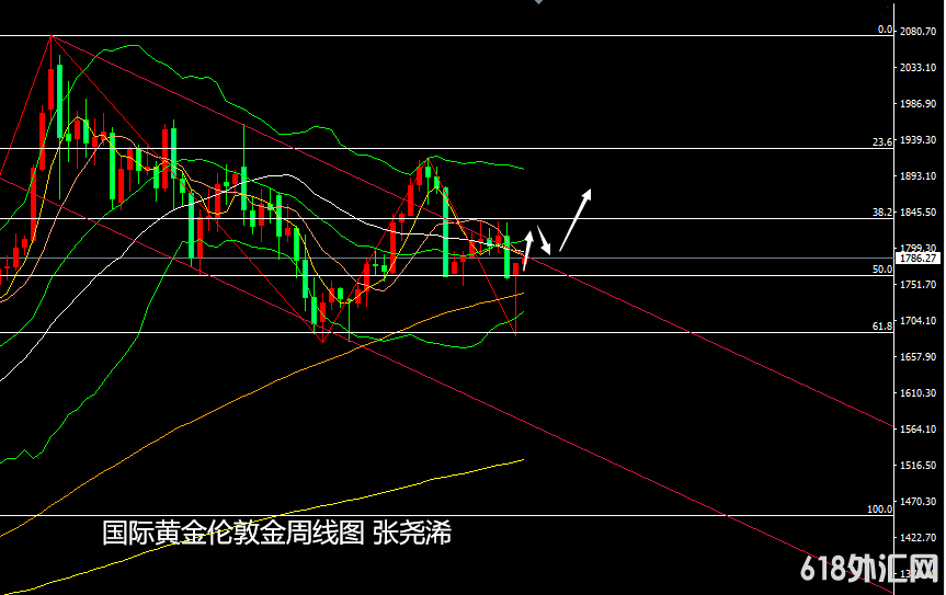 上方关注1795美元,1811美元以及1832-36美元,下方则以50%回撤线为初步支撑,100周线仍为看涨保持的重点防线。