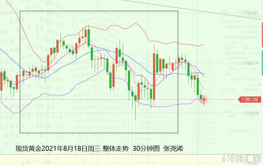 展望今日周四(8月19日):国际黄金开盘由于技术上的遇阻压力,以及美指开盘较明显走高偏强,而承压运行,中长线对收紧货币政策的预期,仍给美元提供支撑。当然,还有隔夜美联储会议纪要显示多数官员预计今年可以开始缩减购债规模,且隔夜逆回购操作创历史新高的利空影响;