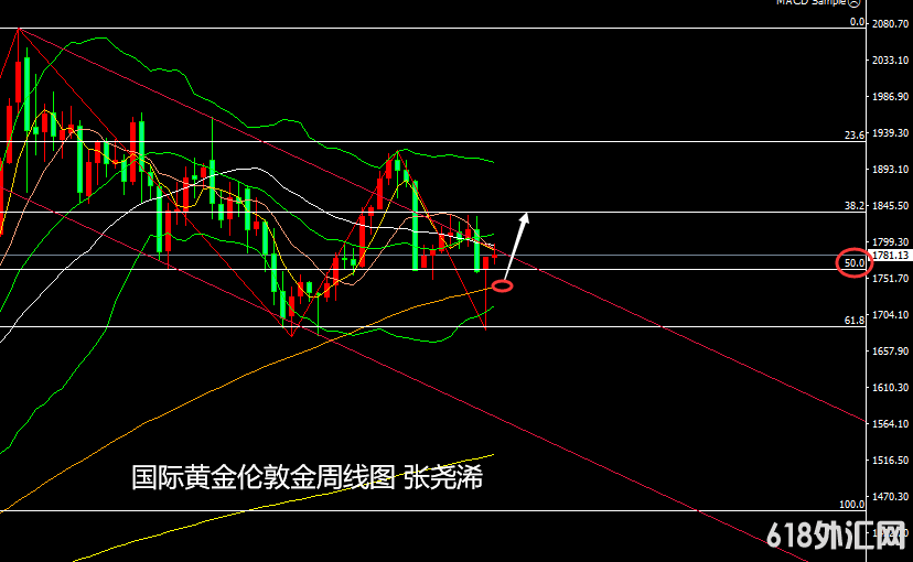 从主图上看,本周高点1795美元附近均线阻力较为密集,所以遇阻回落也属正常,根据上周的长下影线反弹力度看,后市仍将继续看涨,回落则视为再度的多单入场机会,多头将突破此阻力,并进一步走高至中轨附近的1809美元附近乃至1834美元或更高。关注好回落触及的支撑位置。
