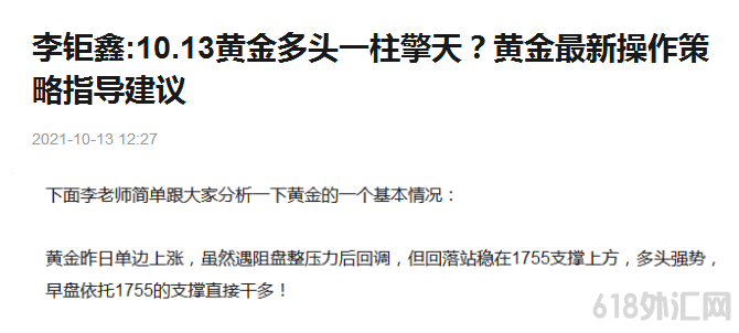 李钜鑫:10.21金银油日内趋势剖析,全面走势分析操作策略建议