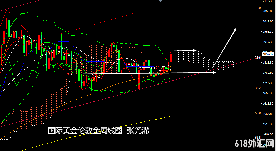 目前多头有所减弱,但不能说明有见顶风险,在重回38.2%回撤线下方收线前,金价仍将保持反弹走势,如收线至此下方,则看好震荡区间运行,整体保持在200日均线上方仍还是看涨。