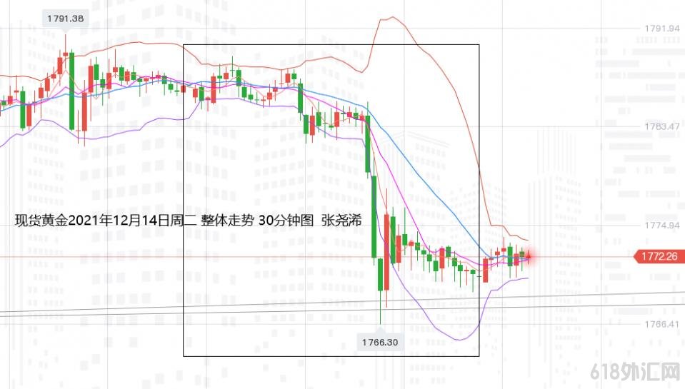 上交易日周二(12月14日):国际黄金伦敦金较大幅下跌收阴,两日的区间底部反弹,被一天又回撤至区间底部,维持这近期的震荡行情。