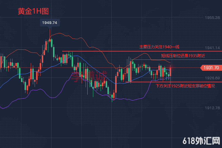 黄金日内如预期的震荡消化,上方回弹1933/34一线即受阻回修,目前从小时图结构上来看,日内结构重心有所下移,再度走弱的可能性加大,但这种震荡式的行情又很难出现大幅的回落,所以小时图上,晚间黄金大概率还是会以震荡为主。晚间上方继续关注1935附近短压,主要压力依旧关注1940一线,下方则继续关注1927-25短支撑带争夺,但主要支撑还是看向1920-17一带。