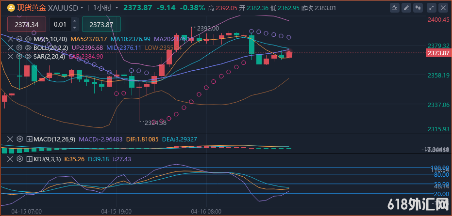 【 黄金技术面分析】:周二黄金价格日内走跌,白盘低点触及2363一线止跌反弹,实时现报价2372一线。目前小时线布林带逐步收口,上轨位于2392一线,下轨布林带在2351位置。今晚阻力关注2389和今日高点2392区域,其次是2400-05区域压力点,至于2415和2425算是两个防守阻力节点。支撑方面留意日线MA5均线2360位置,其次是小时线下轨2350和日线MA10均线2345形成的支撑范围,更下方看4小时MA60均线支撑2335和4小时下轨布林带2330一线。综合来看黄金价格再次破位2400几率不大,高台跳水随时会再次上演,今晚先看小时线上下轨区间的破位情况再定后续,考虑到小时线、4小时线和日线的SAR指标都出现在高位向下发散,美盘的主思路还是维持反弹高空对待。美盘策略:2388-2392区域做空,止损2398.目标2375-2360.下破持有;低位触及2350(±2个点)做多,止损2340.目标2360-2370;