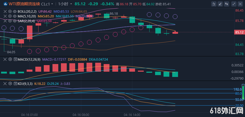 【原油消息面解析 】:周一(4月15日)美市盘中,美原油震荡上涨,目前交投于85.8美元/通附近。原油市场对伊朗无人机和导弹袭击以色列的初步反应相当平淡,主要原油期货合约的价格波动不大。人们原本担心,伊朗袭击以色列预示着中东冲突的重大升级,油价将因供应可能中断的担忧加剧而走高。但亚洲早盘油价走势温和,全球指标布伦特原油期货和美国西德克萨斯中质油期货变化不大。市场传递出的信号似乎是,就目前而言,局势重大升级和以色列发动报复性打击的风险相对较低。这可能是因为,尽管伊朗及其代理人在周末的袭击中发射了300多枚导弹和无人机,但对以色列造成的破坏很小。分析师们说,如果要使局势升级对油价产生更重大且更持久的影响,就需要出现实质性的供应中断,例如伊朗附近霍尔木兹海峡的航运受到限制。