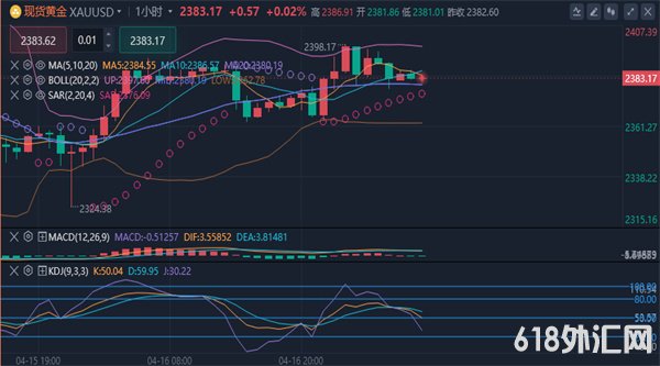 【黄金消息面解析 】:周二(4月16日),由于国际货币基金组织(IMF)表示,预计到2024年经济增长将稳中放缓,黄金市场继续坚守在历史高位附近,距离2400美元仅一步之遥。黄金美市早盘一度逼近2360.但随后反弹至日高2393.04.截至发稿,现货黄金上涨0.29%至2389.45美元/盎司。在华盛顿举行的春季年度会议上,国际货币基金组织发布了最新的经济项目,预计今年全球经济将增长3.2%,与2023年持平。预计发达经济体今年的集体经济将增长1.7%,较2023年增长1.7%。略高于2023年的1.6%;与此同时,新兴市场预计增长4.2%,略低于去年的4.3%。尽管2024年的数据稳定,但国际货币基金组织表示,增长处于几十年来的最低水平。“它低于新冠疫情爆发前(2020年1月《世界经济展望更新》发布时)做出的3.6%的中期预测,以及全球金融危机爆发前做出的4.9%的中期预测(2008年4月《世界经济展望》发布时),全球实际增长率历史上(2000-19年)年均增长率为3.8%,”国际货币基金组织表示。美国今年的经济在发达国家中表现最为突出,国际货币基金组织预计2023年GDP将增长2.7%,高于2.5%。美国经济增长从1月份的预期2.1%上调。
