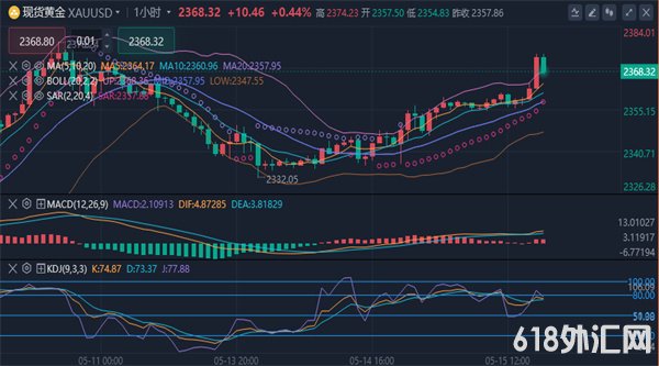 黄金价格交投于2370美元/盎司左右,连续两日日线呈现上涨趋势,而