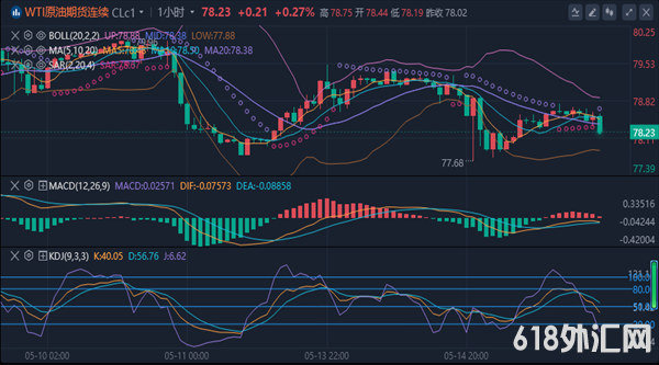 【原油技术面分析】:原油从日线上来看,上周三下探76.8附近后迅速拉升,日线收了一根下影线较长的锤子线,走出了止跌回升的信号,但是始终没有突破80关口,周五逼近80关口后一度下跌1.72%,不过周一并没有延续上周五的跌势,而是反弹站上79关口,目前来看油价大概率会站上80关口。四小时线来看,周一油价在77.7一线开始走反弹,最终站上79关口,目前布林带收口,油价处于中轨之间,