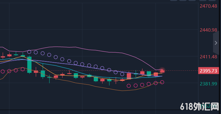 8月7日(周三)欧市盘中,现货黄金小幅震荡,目前交投于2395.73美元/盎司附近。尽管对美国9月降息的预期和中东地缘政治紧张局势升级仍给金价提供一些支撑。中银国际环球商品市场策略主管傅晓表示:"主要受美元走强的影响,黄金仍然有些疲软......但黄金的宏观环境相对积极,因此我们可能会在短期内看到黄金的一些区间波动。黄金日线收一阴线,今日黄金开盘价格在2390附近,目前整体行情走势还是处于空头趋势。虽然在地缘政治的影响下,黄金得到一定的支撑,但在目前来看,还是保持谨慎看多。早间致清在文章中提到预计今日黄金走势应该是修复状态。目前黄金价格于2397-2378区间震荡运行。布林带处于收口的形态,晚间开布林带开口运行,大致走势致清看2400关口附近看跌,下跌底部参考前低2364附近推进。