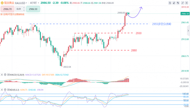 国际黄金走势分析: 周五(3月14日)亚市,现货黄金高位震荡,目前交投于2990美元/盎司附近。金价周四飙升逾50美元,金价上涨,再创历史新高,因为关税不确定性加剧以及对美联储放松货币政策的押注使金价保持强劲吸引力。随着地缘政治紧张局势加剧,投资者纷