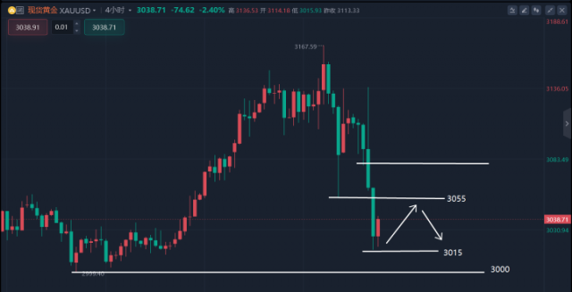 周五(4月4日)亚市早盘,现货黄金窄幅震荡,目前交投于3093美元/盎司附近。 消息面解读:周四因特朗普关税政策推升避险买盘,金价一度刷新历史高点至3167.60美元/盎司,但随后多头趁机获利了结,金价一度大跌逾100美元至3054.06美元/盎司,随后获得逢低买盘