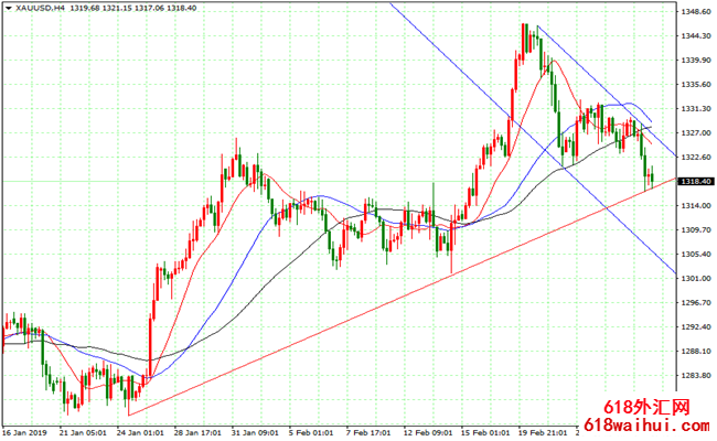 分析理由:现货黄金周三(2月27日)扩大跌幅,美市盘中最低下探至1316.43美元/盎司,金价已下破1320关口,进一步走弱。美元则止跌转涨,美指盘中最高触及96.18,在96关口上方运行。周三美联储主席鲍威尔继续在众院作证,其讲话偏鹰派,对金银市场形成利空,对美元形成提振。黄金短线跌势暂缓,但是整体走势依旧承压,MA均线有加速回落的迹象,且金价目前承压于60周期关键均线下方,KD以及RSI指标也倾向继续下跌,孔明分析这将在很大程度上限制黄金的反弹空间。上行首先需关注1326.50美元附近阻力。继续受阻于该水平,那么黄金将大概率加速回落。