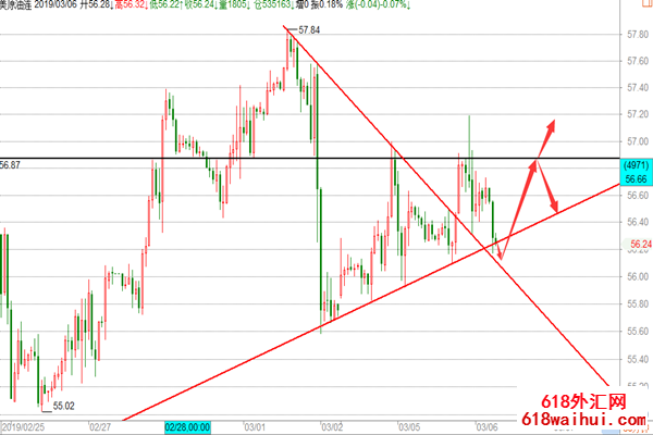 原油策略:56-56.1触及做多,止损55.5,目标看56.9-57.3