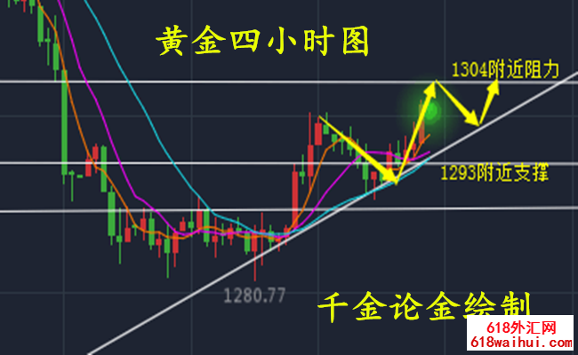 2、下方回调至1293-1295附近一线做多,止损4美金,目标看1296-1298一线;