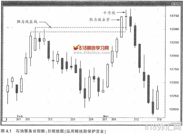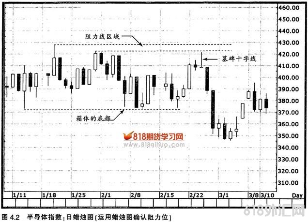 ͼ4.4չʾÁËÒ»¸öϽµ´°¿Ú£¬¶ÁÕß¿ÉÒÔ´ÓͼÖз¢ÏÖÄǸö39.8ÃÀÔªµ½40.2ÃÀÔªµÄ×èÁ¦ÇøÓò¡£Òò´Ë£¬Í¶×ÊÕß¿ÉÒÔ¿¼ÂÇÔÚÊг¡½ø¹¥µ½¸Ã×èÁ¦Î»ÇøÓòʱÂô³öÊÖÖеÄÍ·´ç¡£¸Ã¹ÉƱͨ¹ýÀ¯ÖòͼAµ½´ïÁËÉÏÊö×èÁ¦Î»Ö᣾¡¹Ü¸Ã¹ÉƱÒѾµ½´ï×èÁ¦ÇøÓò£¬ÊÇ·ñÓ¦¸ÃÔÚÓö¼ûÕâ¸ù¸ß´óµÄ°×ɫʵÌåʱѡÔñ¿ªÁ¢¿ÕÍ·Í·´ç£¿ÎÒ²¢²»½¨ÒéÕâô×ö£¬¼´Ê¹Êг¡ÒѾµ½´ïÒ»¸ö×èÁ¦ÏßˮƽÉÏ£¡Çë×¢ÒâÀ¯ÖòͼAÖ®ºóËù³ÊÏֵė—ÕýÈçÇøÓòBËùʾ£¬Êг¡ÐγÉÁËһϵÁÐССµÄʵÌ壨·Ä´¸Ïߣ©¡£ÕâЩССµÄʵÌ徯¸æÎÒÃÇ£¬Å£·½ÒѾƣ±¹²»¿°£¬ÕâÕÑʾÁËÊг¡ÔÚϽµ´°¿ÚλÖÃËù¹¹ÖþµÄ×èÁ¦ÇøÓòÓÌÔ¥²»¾öµÄÐÄ̬¡£ÏÖÔÚ²ÅÊÇ¿ªÁ¢¿ÕÍ·Í·´çµÄÁ¼ºÃʱ»ú¡£µ±È»ÁË£¬Èç¹ûÊг¡ÔÚ¸ßÓÚϽµ´°¿Ú¶¥²¿µÄλÖ㨼´40.2ÃÀÔª£©ÊÕÅ̵ϰÔòÒªÁíµ±±ðÂÛ£¬ÎÒÃÇÓ¦¸ÃÖØÐ¿¼ÂÇ¿ªÁ¢¿ÕÍ·Í·´çµÄ±ØÒªÐÔ¡£ÕýÊÇÒòΪÎÒÃÇÓÐÒ»¸öÀ¯ÖòͼÐźţ¨Ï½µ´°¿Ú£©É趨ÁË×èÁ¦ÇøÓò£¬ÒÔ¼°ÁíÍâÒ»¸öÀ¯ÖòͼÐźţ¨Ò»ÈºÐ¡Ð¡ÊµÌ壩£¬Õâ¶þÕßÇ¿»¯ÁËÒ»¼þÊ£¬ÄǾÍÊÇÔÚϽµ´°¿Ú¼Ûλ¸½½ü¹ÉƱµÄ¹©¸ø£¨Âô³öѹÁ¦£©ÕýÔÚ·äÓµ¶øÈë¡£