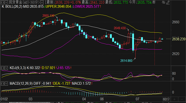 周线级别,金价在上冲至布林带上轨之外后,正常出现回落,指标上,