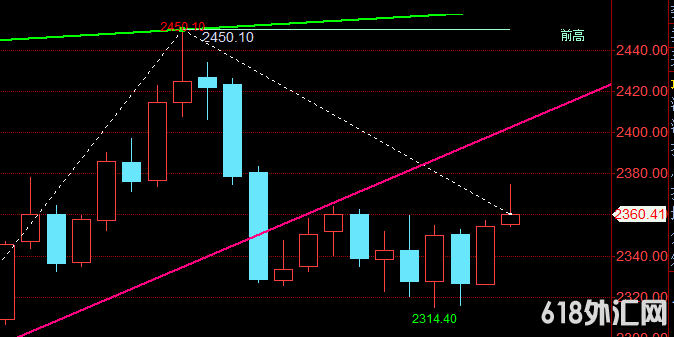 黄金日线收阳,上涨突破前日高点,给到2357附近一线。黄金4小时图,布林带走势区间进一步扩大,SAR指标向上运行形态。MACD指标向上释放能量有所缩减。KDJ指标于上方超卖区有粘合的迹象。黄金1小时图,布林带走势运行区间有所缩减。MACD指标向下释放能量逐步增长。KDJ指标形成死叉向下运行,且下方还有充足的运行空间。黄金价格如果上涨,先看早盘上涨日内高点2375附近,上破再看上方2385附近阻力。黄金价格如果下跌,先看1小时布林带下轨2346附近支撑,下破再看昨日晚间回调2335附近支撑。