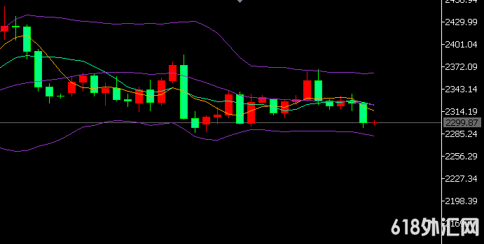 黄金日线收阴,收在下方2298附近一线。黄金4小时图,SAR指标向下运行形态。布林带走势也是偏下运行。MACD指标向下释放能量平稳。KDJ指标于下方超卖区运行且有粘合的迹象。黄金1小时图,布林带运行区间有进一步收合的迹象。MACD指标向上释放能量,但黄金价格并未有明显的变化。且整体走势也是偏弱的状态。综合以上,今日黄金盘面整体来看,反弹高空为主,回踩低多为辅。黄金价格如果上涨,先看上方2310附近阻力,上破则看上方2320附近阻力。黄金价格如果下跌,先看下方2287附近支撑,下破则看下方2275附近支撑。