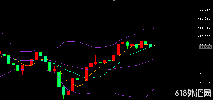 原油日线收十字阳线,收在中线80.88附近。相对比前日来说,原油价格上涨缩减,低位做了进一步的突破。运行区间也发生了微小的变化。但整体走势并未受到过大的影响。原油4小时图,SAR指标向下运行形态。MACD指标向下释放能量相对平稳。原油价格于布林带中轨81.10附近和布林在下轨80.35附近区间运行。原油1小时图,原油价格4连阳收线,目前接近布林带中轨80.89附近运行。MACD指标向下释放能量呈阶梯式缩减。KDJ指标于下方超卖区附近形成金叉向上运行。综合以上,今日原油盘面整体来看,反弹高空为辅,回踩低多为主。原油价格如果上涨,先看上方81.5附近阻力,上破则看上方82.0附近阻力。原油价格如果下跌,先看下方80.2附近支撑,下破则看下方79.5附近支撑。