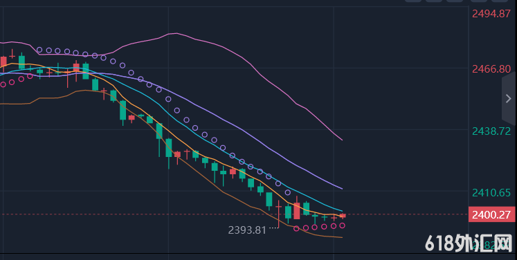 黄金价格如果上涨,先看上方2410附近阻力,上破则看上方2420附近阻力。
