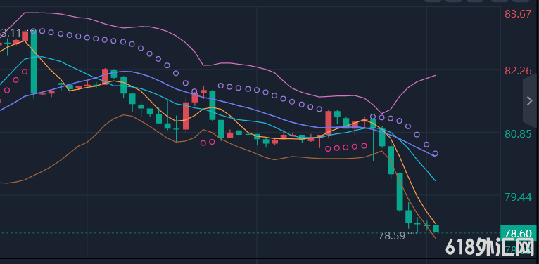 从技术分析的角度来看,WTI和布伦特原油期货价格均已跌破关键支撑位。若无重大利好因素出现,油价可能会继续下探。日线收得一阴线。日线结构上,昨日阴线的出现无疑是打脸了周三阳线,说明短线行情可以进行技术性的回弹,但是周三阳线回弹的属实有些过分了。原油价格已经跌破布林带下轨79.54附近之下运行。且当日最低价给到78.60附近一线。于周五收盘价格也是在当日原油最低位附近。原油4小时图。布林带走势呈现开口运行的形态。MACD指标向下释放能量出现进一步增长的情况。KDJ指标向上运行,但在中线附近突来的转向且形成死叉向下运行。让市场投资者面对这突入起来的转变打的措手不及。原油1小时图,布林带开口运行,原油价格呈八连阴收线的形态。KDJ指标向下运行,粘合于下方超卖区一线。原油周一开盘走势仍处于弱势的形态!