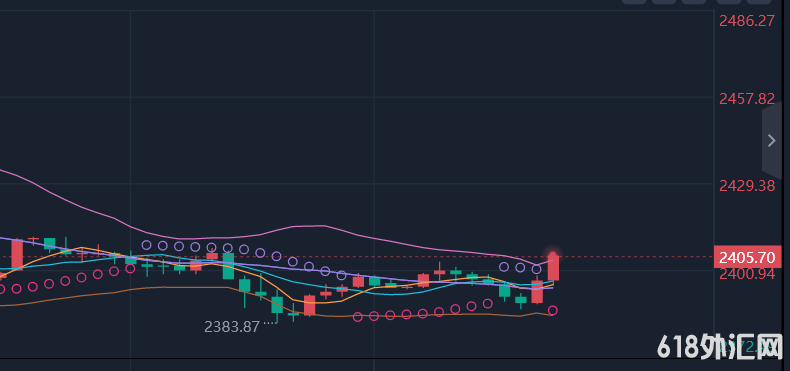 黄金价格如果上涨,先看上方2412附近阻力,上破则看上方2419附近阻力。