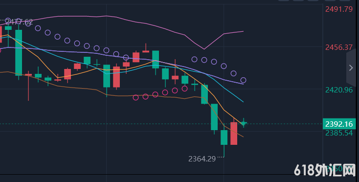 黄金下跌信号:2400-2415.防守2420.目标2364-2353