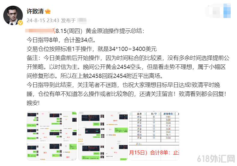 许致清:许致清:8.16今日黄金原油最新行情走势分析及策略在线!
