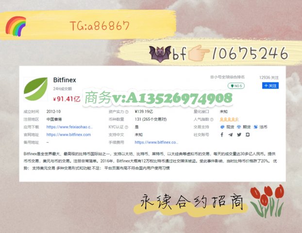 Bitfinex平台诚意招商 企鹅:尔368叁21武9 唯心:jht2257 蝙蝠:1零52二伍6久
