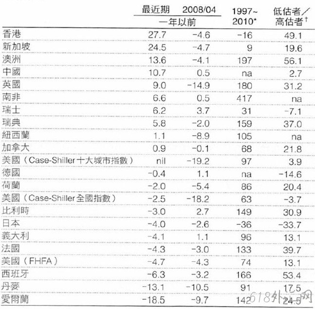 ![]() 自从二〇〇九年年底公布这些最新数据以来,在七个房价原已走高的国家,房价的涨势全都加快了脚步。香港的房价较一年前上涨超过四分之一。在房屋市场尚未走出谷底的国家中,房价下跌的速度已经放慢,除了爱尔兰。而在美国,在我们追踪的三个指数当中,有两项指数显示房价依然低于一年前的水平,但追踪十大城市房价的Case- Shiller房价指数于一月时的价位跟一年前一样。 新加坡于二〇〇九年第三季时是房价最低迷的市场之一,到二〇一〇 年第一季时已成为房价泡沬化第二严重的国家。新加坡政府显然对此感到忧心,因此采取行动遏止炒房,让购屋者更难延后支付房贷。加拿大的房价也再度走高,该国政府于二月宣布新的房市措施,让投资性购屋的成本更高,并减少现有屋主可以贷款的额度。 其他国家是否应起而效尤?这部分取决于对房屋市场的判断:房价是否已下跌到足以让泡沬消除的程度,或者依旧受到高估。一种可行的作法是比较国内当前的房价对房租比与其长期平均值,《经济学人》在评置房屋的合理价值时便是采取这种作法。 日本、瑞士与德国目前的房价对房租比低于长期平均值。但即使是美国,根据《经济学人》计算的合理房价显示,美国房价的修正或许已经足够。根据Case-Shiller全国房价指数显示,美国的房价已经下跌到让不动产看似受到低估的程度。在Case-Shiller十城市房价指数涵盖的美国大城市里,房对房租比已经接近历史平均值。如果根据联邦住房金融局(Federal Housing Finance Agency)编疡的房价指数,美国的房价依然高估了13%,但逭项指数不包括申办次级房贷的房屋,而很多这类房屋的售价非常低廉,因此,该指数可能低估了房价崩跌的程度。 英国的情形就不同了。英国房价在二〇〇九年第一季至二〇一〇年第一季这一年内上涨了近10%,但该国的房价对房租比依然比长期平均值高出近三分之一。逭种现象——房价原已过高但仍继续上扬——也出现在香港、新加坡、澳洲、瑞典与加拿大。在法国、意大利、西班牙与爱尔茧,房价相对于国民的所得潜力并未显得过高,但这些国家的房价至少还在下跌。 ![]() 优点 消费者支出或民间消费平减指数(或称作「消费支出平减指数」),来自对总体消费支出的当期与固定价格的预测。这项数字反映的是实际支出,这种作法绝对胜过计算一般家庭对一篮子消费品的支出。也可以避免用选择性的偏颇方式决定一篮子商品与服务的组成内容。 此外,消费者物价数据系每月搜集一次,而平减指数却是一段时期的平均值,经常是三个月一次。平减指数通常包含房租的估算值,这种方式会比英国的RPI或是加拿大的CPI采用利率的作法来得较贴近事实。 |