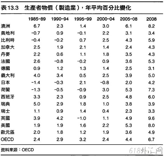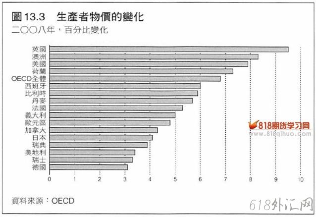 评价标准: OECD平均生产者物价从1990年到1998年的年增长率为3.5 %,从2000年到2008年的年增长率为3.4 %。