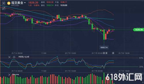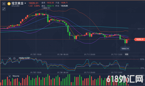 周一(1月18日)亚洲时段,现货黄金探底回升,一度短线急跌至1805.18美元/盎司,后基本收复失地。技术面上,目前日线图均线系统开始逐步下移形成阻力,RSI指标中轴下方偏空运行,周线图连阴收尾,短周期黄金继续走空形态。四小时MA5和MA10均线阻力在1835,1842,进一步关注1850,这里是上周五美盘起跌点位置。下方支撑建议关注1810、1802,这两个位置是主要的支撑位置,进一步关注1789,这里是前期低点连线的趋势线支撑。