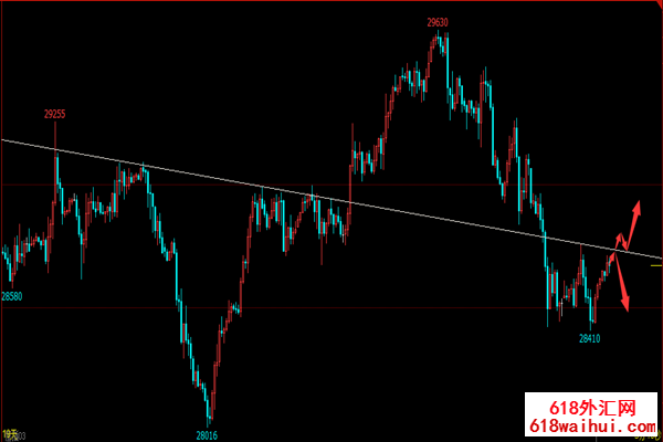 四小时有明显的走出一波头肩底结构,下方日内有明显的看涨信号,加上基本面的利多铜价,本周初我们继续以多头为主,小时图有双底的信号出现,下方2.7080-2.7150这个区域有明显的支撑,日内以低多思路操作即可,综合来看日内亚欧盘直接多,2.7400-2.7500这个区域做多,看突破即可。