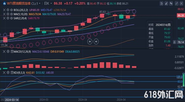 【原油技术面分析 】:日线来看,昨日在跌至84.55美元/桶的低点后快速反弹不但收复了跌幅还创下日内新高,最终收了一根带下影线的阳性,而且此前也连续两次在跌至84.6附近后快速反弹,这也表明这个位置附近的支撑还是非常强的。四小时线来看,昨晚在跌至84.55美元/桶后反弹,随后一根线拉升至86上方,布林带三轨平行运行,油价运行中上轨之间,KDJ形成金叉后向上发散运行,MACD绿色能量柱缩量,短线来看走势偏强。综合来看,近期国际原油在高位震荡调整,屡次下探84.6一线后反弹,可以看出这个位置的支撑还是比较强的,一旦调整结束可能还会向上拉一波,上方有望到90关口附近,所以日内操作上以多为主,今日操作上建议以回踩低多为主,反弹高空为辅,上方短期关注87-88一线阻力,下方短期关注84.0-84.7一线支撑。
