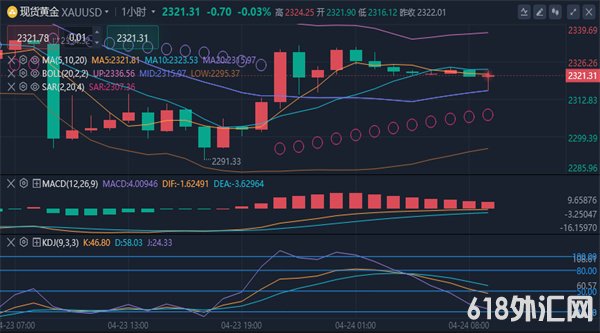 【 黄金消息面解析】:周三(4月24日)黄金在创下近两年来最大单日跌幅后,持续走低。由于投资者关注缓解中东紧张局势,并有迹象表明美联储将在更长时间内维持较高利率,自2月中旬以来,金价仍上涨约15%,尽管有迹象表明美联储将推迟其备受期待的转向政策,美元和美国国债收益率均有所上涨,但贵金属仍然上涨。黄金需求的两个关键部分——央行的购买和东方大国的实物需求——仍然坚挺,并继续为贵金属提供支撑。本周的主要经济焦点将是周四的GDP数据和周五的PCE物价指数数据,以寻找美国降息前景的线索。市场预计3月美国核心PCE物价指数将环比上涨0.3%,同比上涨2.7%。受地缘政治风险降低和美元走强的影响,金价从近期高点大幅回落。包括鲍威尔主席在内的美联储官员在利率问题上保持鹰派立场,这给金价带来了压力。随着对美联储降息的预期调整到较晚的时间表,市场情绪发生了变化。黄金价格的回落可能归因于获利回吐,以及美元的温和走强。市场参与者开始消化美联储将晚于预期降息的预期,这进一步打压金价。