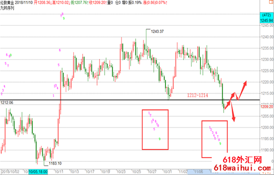 今年美联储已经加了3次息,每次25个基点,美联储官员暗示今年会再加息,2019年另外加息三次。市场预计12月加息的可能性大约为75%,通过这个月的非农数据来看美国的就业数据是比较亮眼的,失业率也维持在历史低位,而下个月的非农数据和各项经济数据如果依然保持目前的状态,那么12月份加息的概率将会大大提高,届时将提振美元,打压商品,不过最近的避险事件比较多,贸易战方面中国双方首脑也即将进行会晤,有向着缓和的态势发展,特朗普目前的态度没有之前那么的强硬,这在短期内第一避险情绪升温,第二贸易战的降温使美元竞争力下降,资金更加倾向于黄金,这也是目前基本面处于多空都有比较充分的条件,空头美联储加息打压黄金提振没有,多头地缘政治事件及贸易战的缓和使的黄金受到避险资金的亲耐,所以接下来我们更多的去关注技术面,基本面目前的这种状态预计还会维持比较久的时间,那么后面的行情我们就交给市场,市场会给到我们完美及真实的答案。